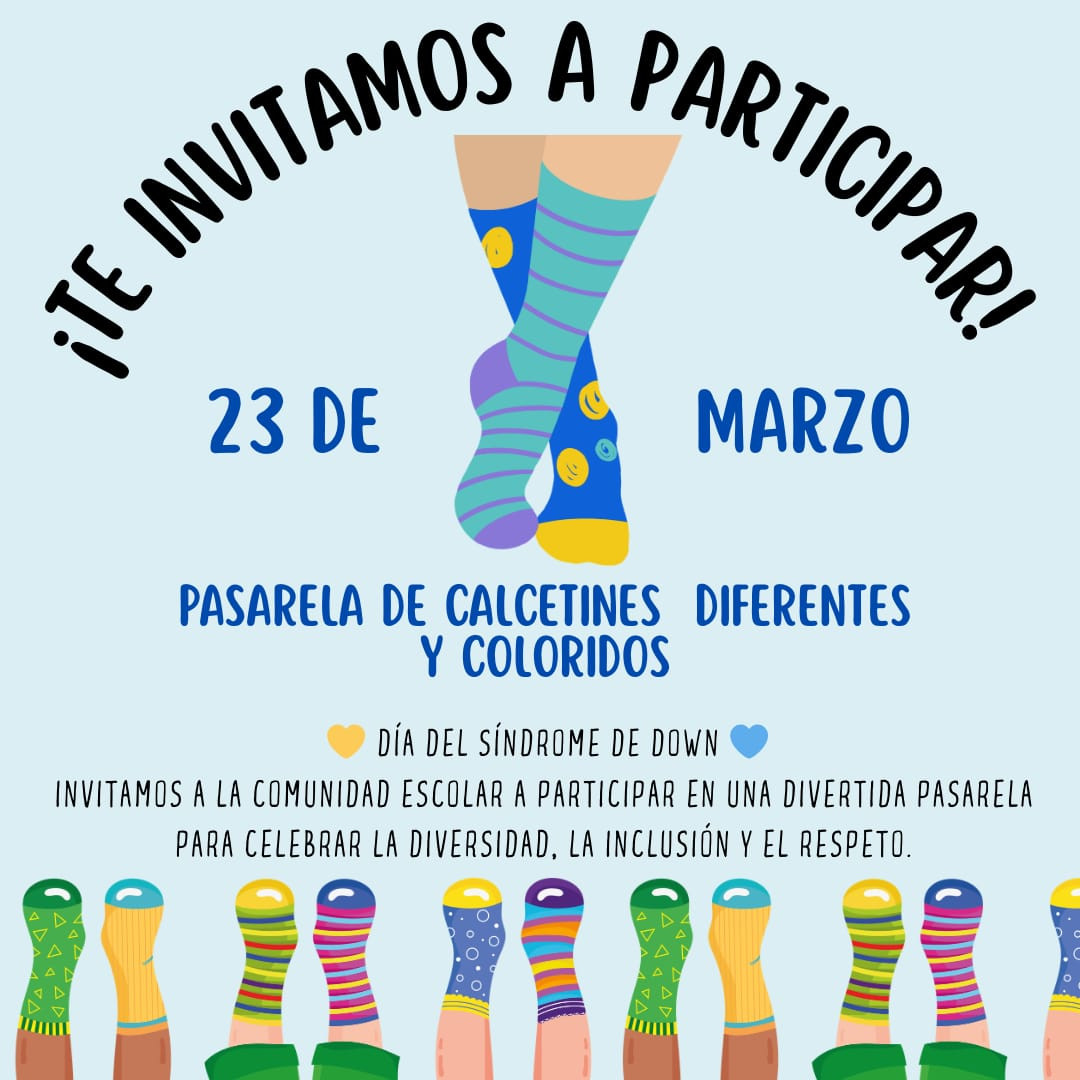 Este próximo 23 de marzo, nuestra comunidad educativa se unirá en una jornada llena de alegría y significado. Bajo el lema de la inclusión, invitamos a todos los estudiantes, docentes y familias del Colegio Raiquen a participar en nuestra Pasarela de Calcetines Diferentes y Coloridos.